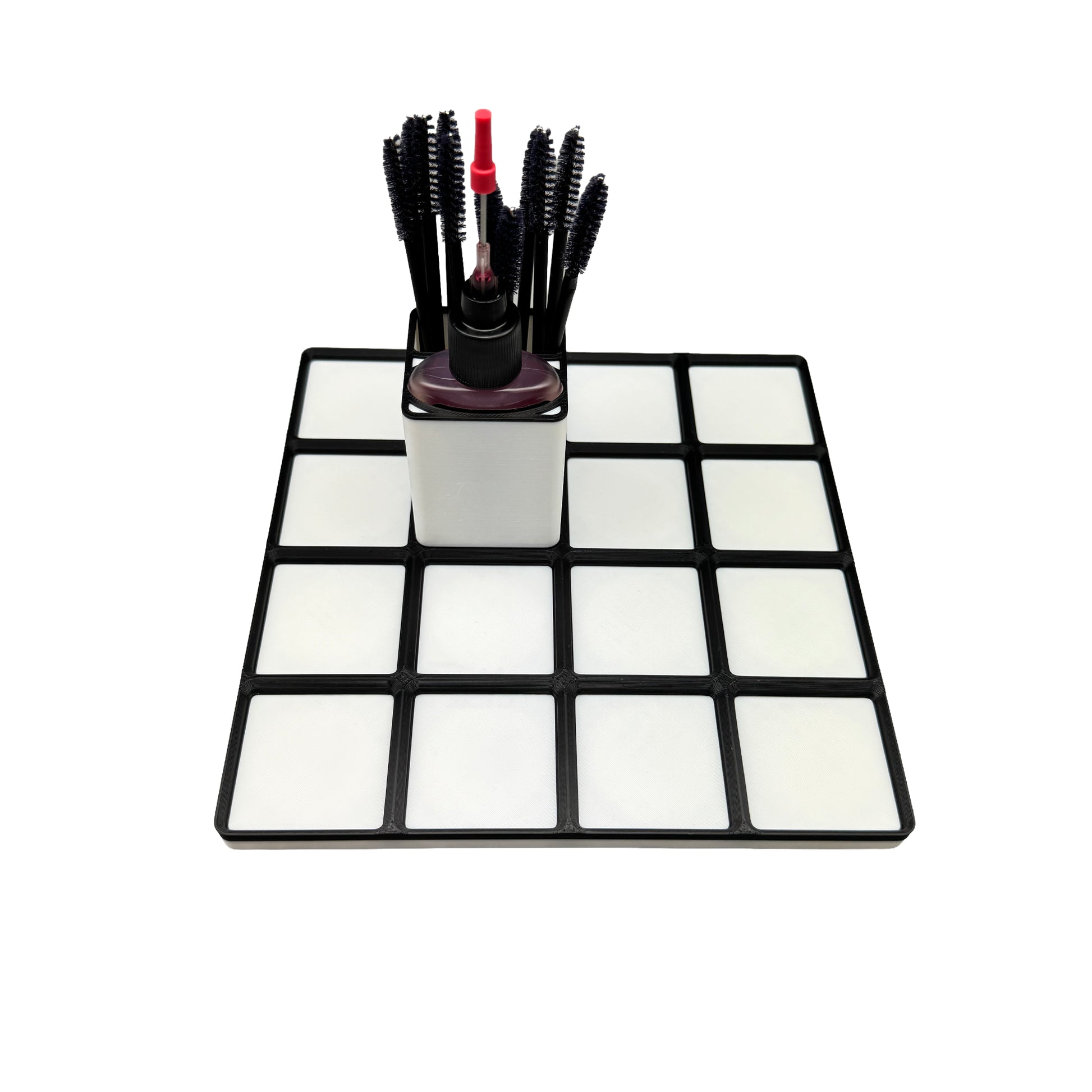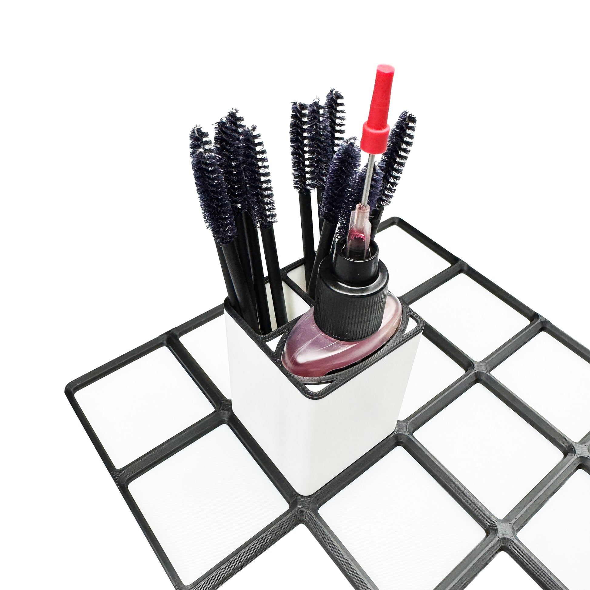 This compact, top-heavy 1×1 design can tip if bumped on a busy workbench, especially if not surrounded by other Gridfinity pieces for support. For maximum stability, we strongly recommend adding our GridLock Upgrade (hidden 30mm × 2mm magnet embedded in the design) and pairing it with our GridLock Magnetic Baseplate.